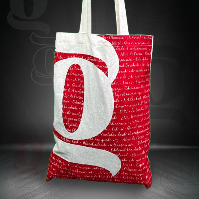 Bolsa de manta de 35x45cm Impresa en rojo Capacidad: Un combo lectores, 2 tazas, 3 playeras.